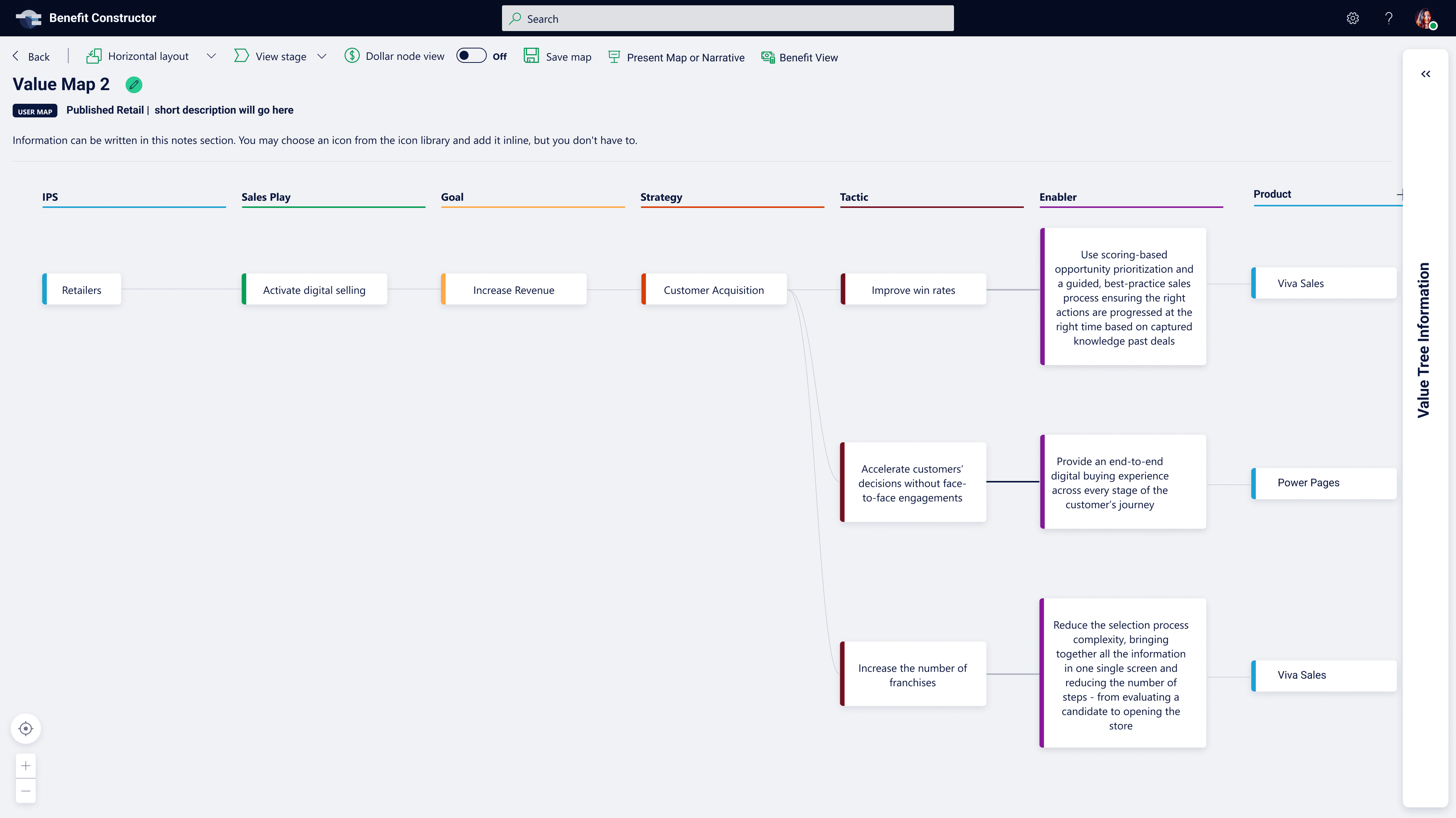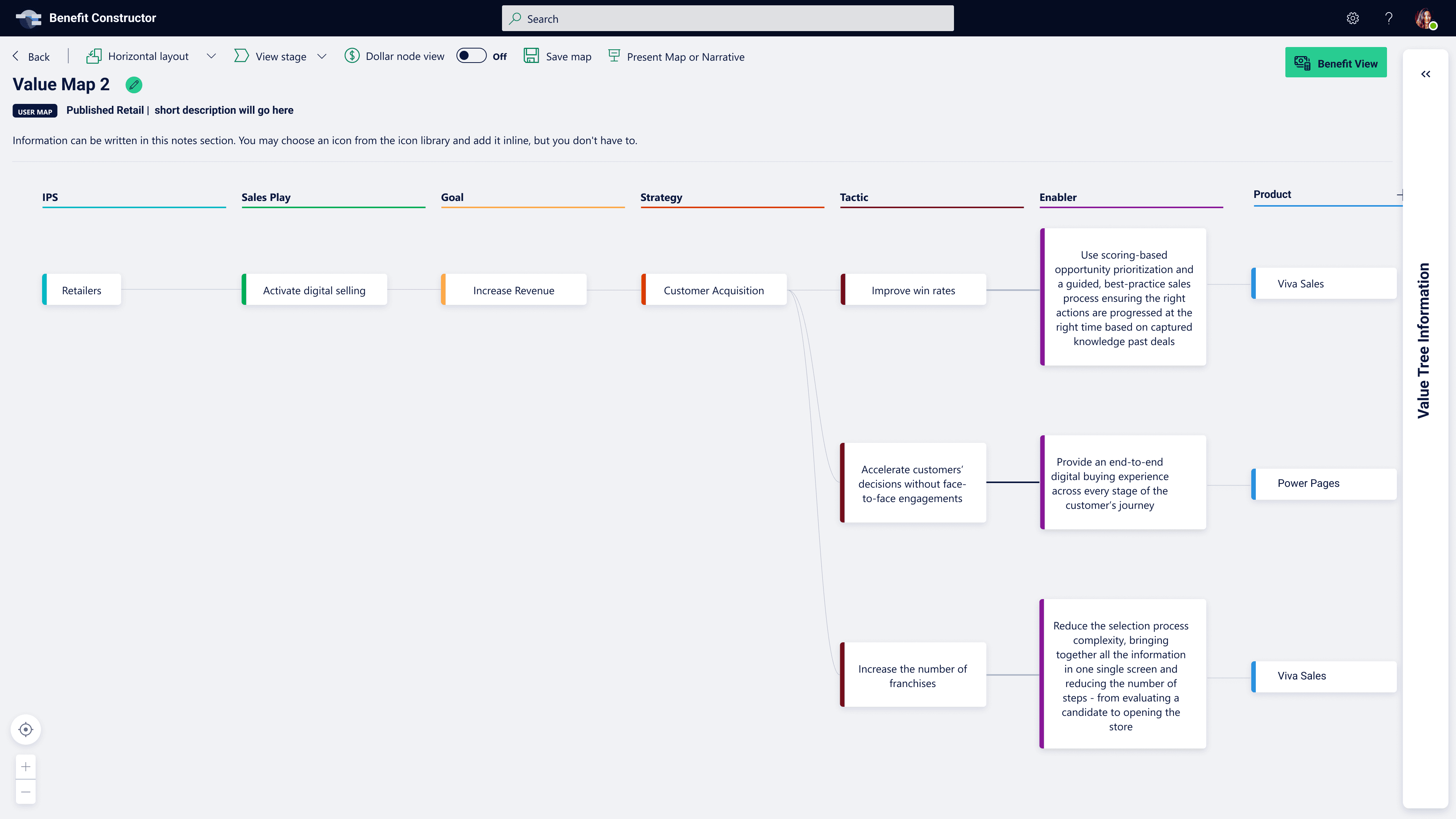 BVC is a B2B sales application tool that provides scenarios for users to solve problems and upsell products to customers. For example, a customer will approach the BVC user base to solve the efficiency of their workflow. The user will use BVC to suggest a product that improves the efficiency of the customer workflow. “According to BVC, you can improve your efficiency by 20% by using product A, and here are the cost and benefits of implementing this product”.