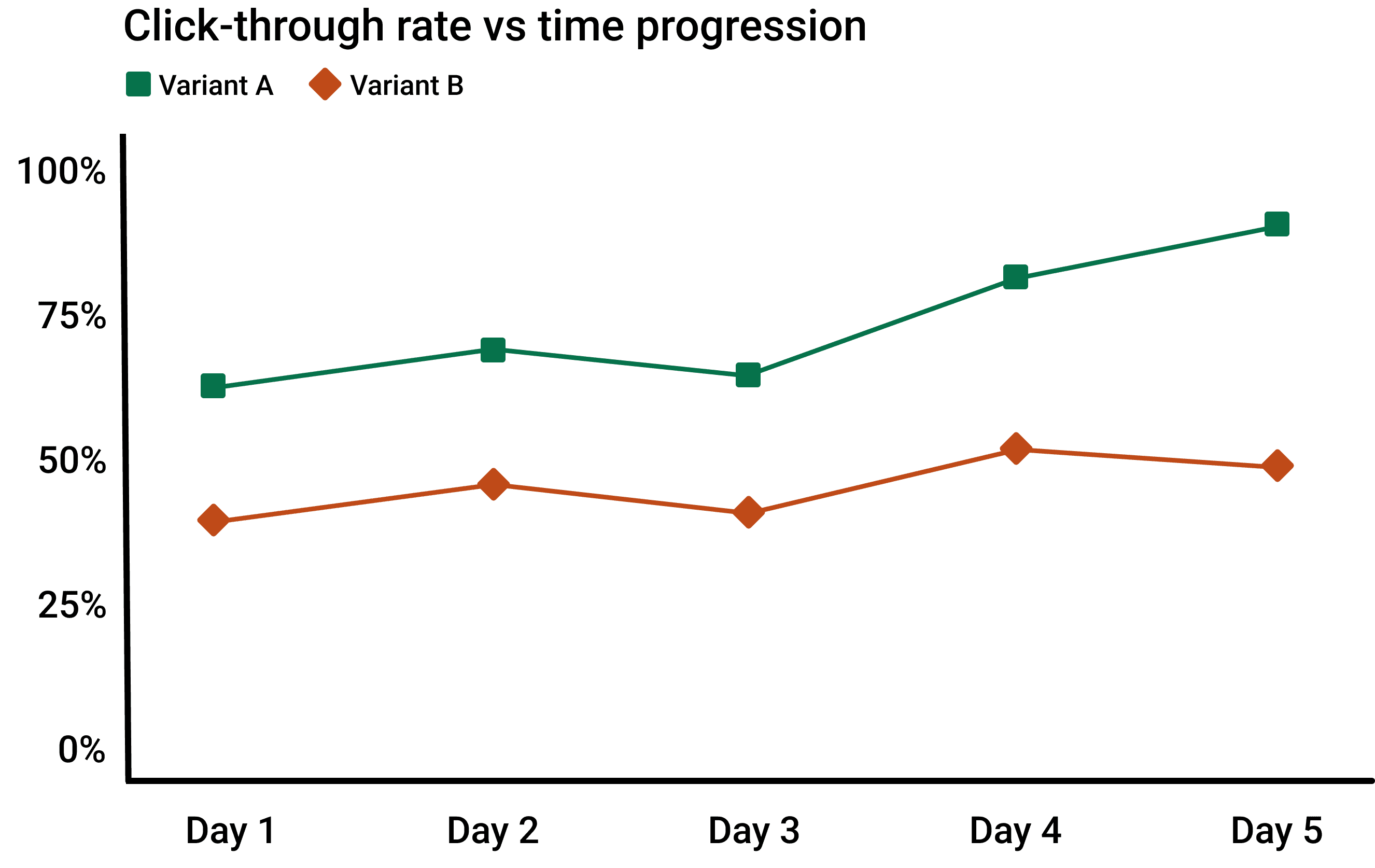 A sample size of 456 and duration of 1 week. The user group was randomly divided into two variants.