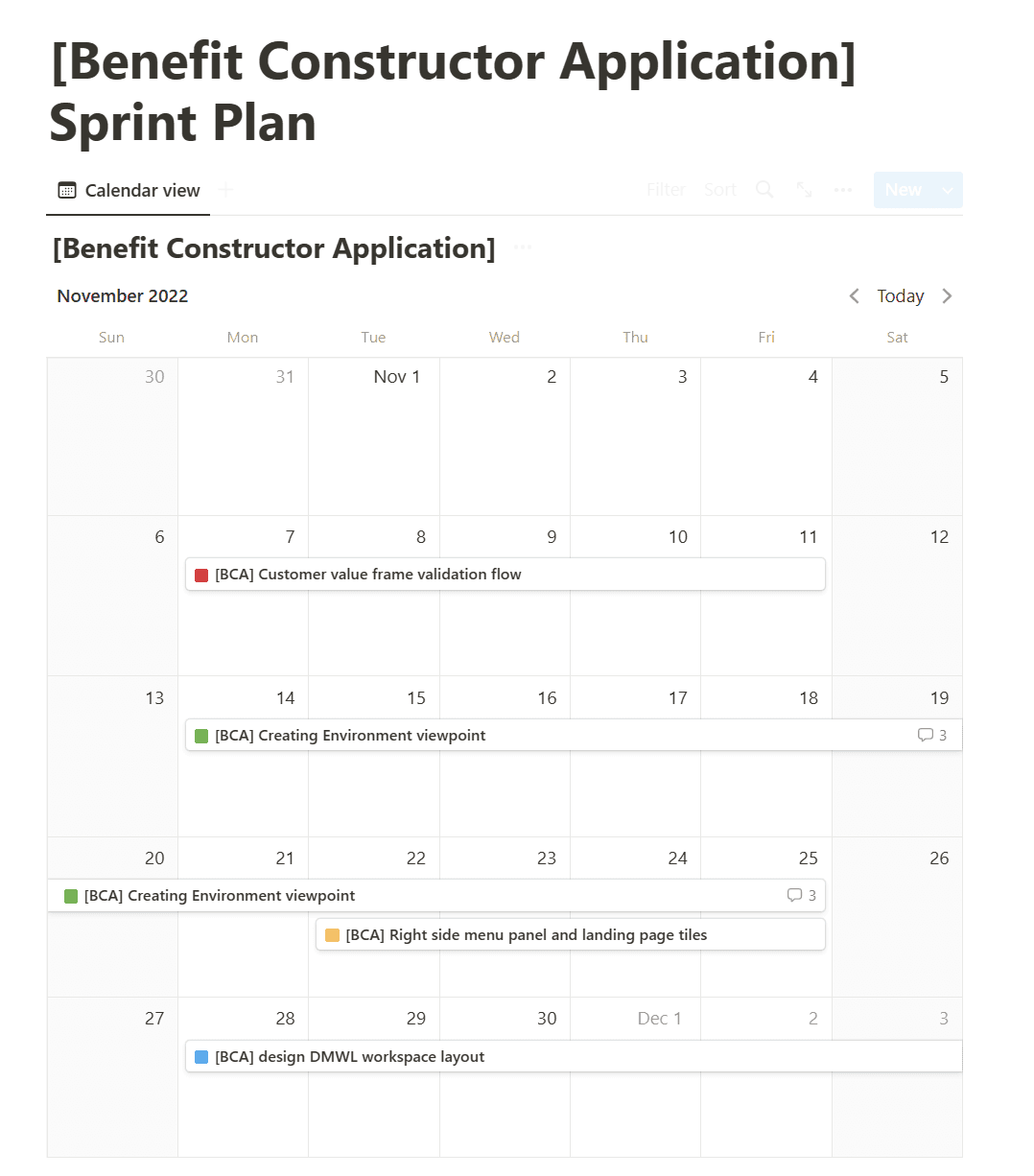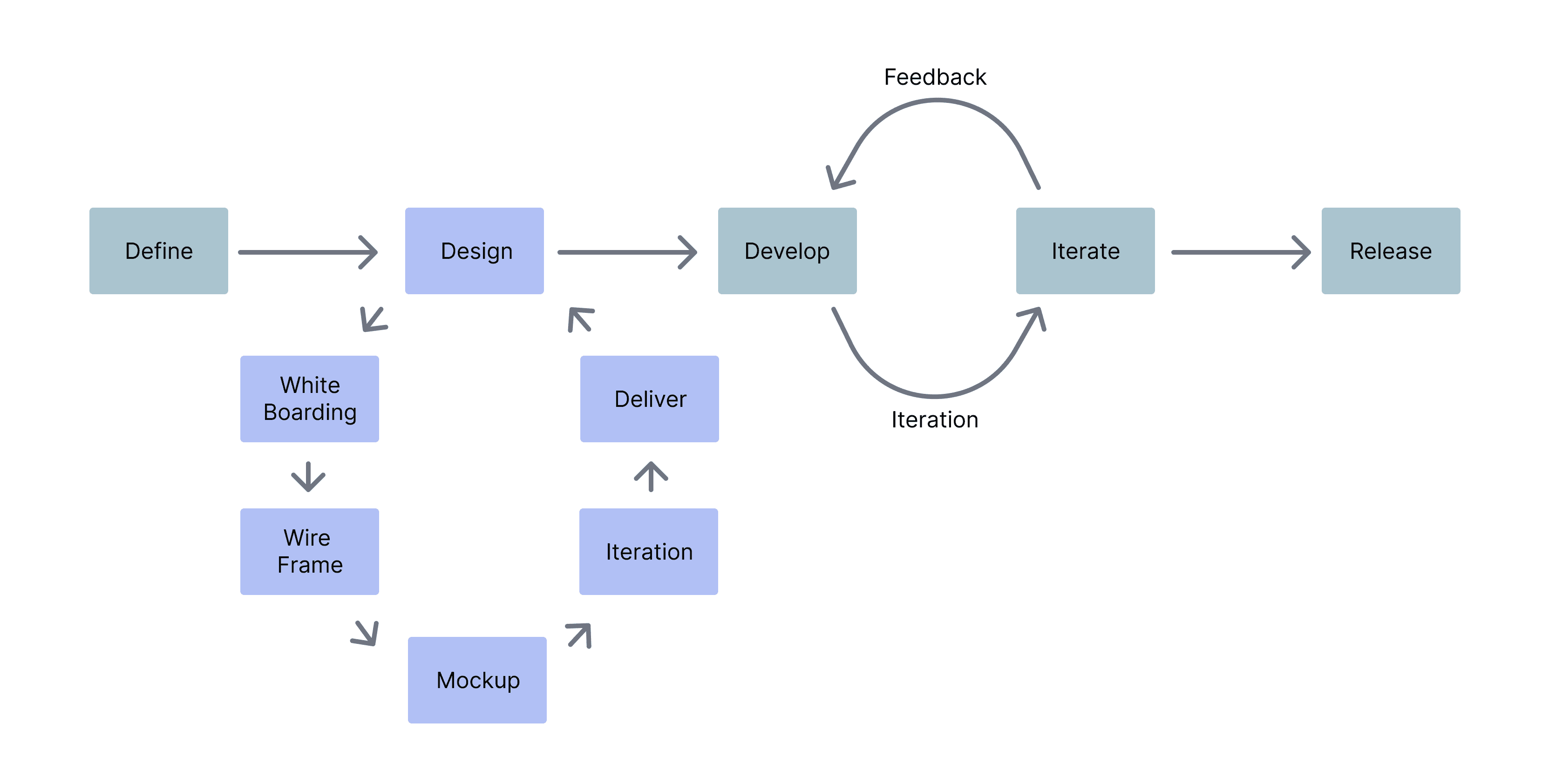 The design process typically consists of several phases, each with its own objectives. An application feature typically contains multiple sprints with a typical duration of 2-3 weeks. Stakeholders and the project team members will meet together and define the feature and have daily stand-up meetings to discuss any progress or blockers to make any adjustments to the process.